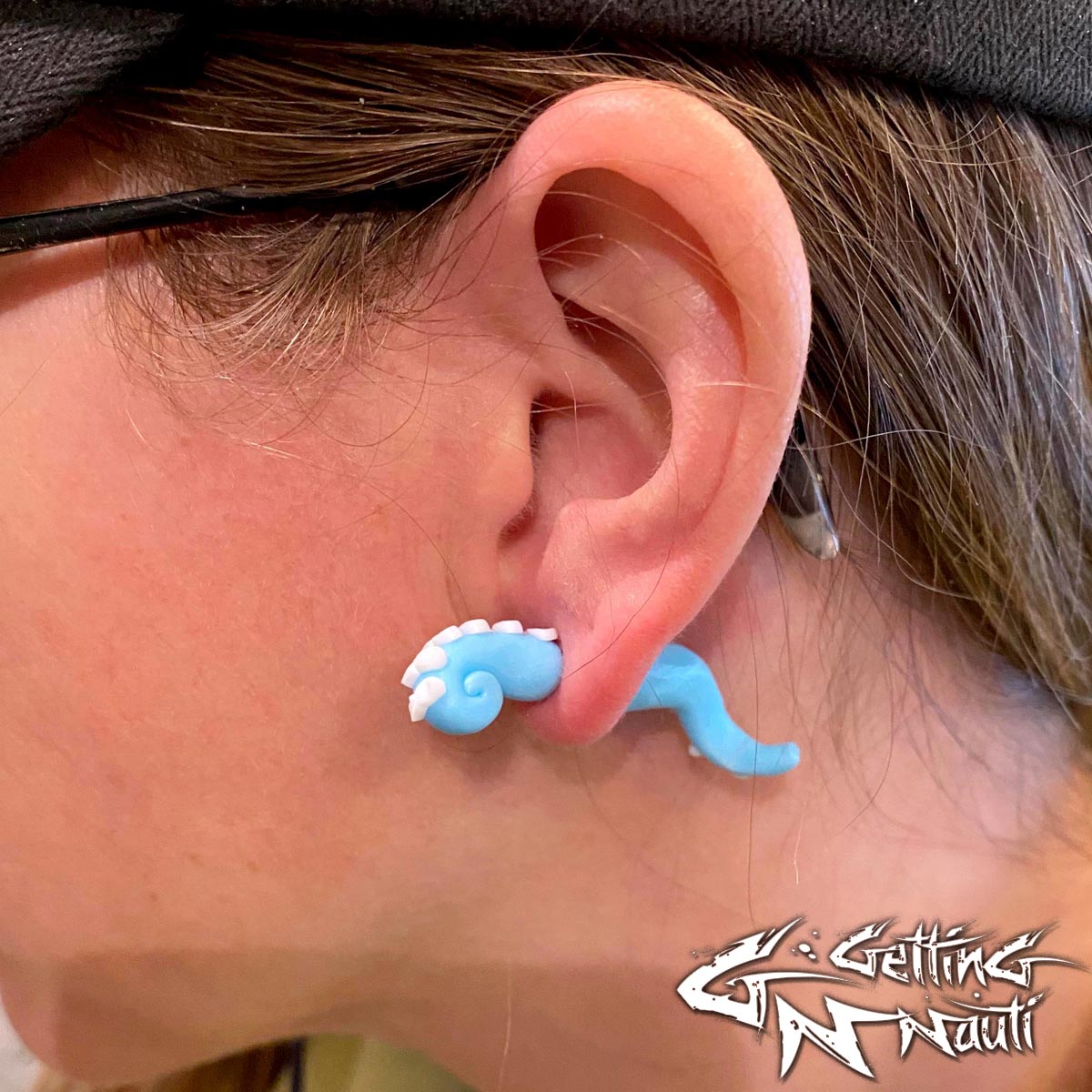 These Kraken Attack Earrings are sure to bring a smile to everyone! The tentacles run right through your ear and hang around looking cute for the rest of the day.